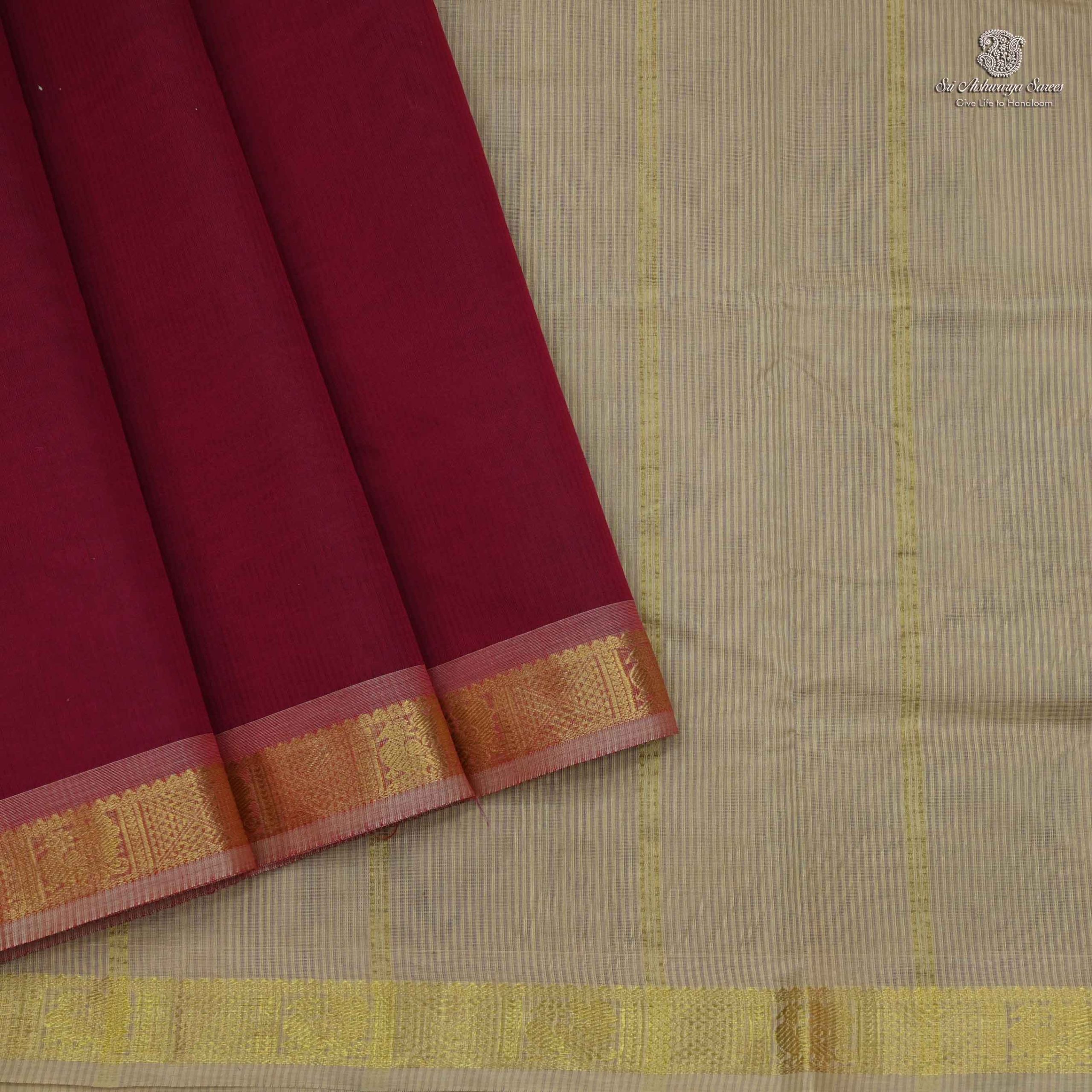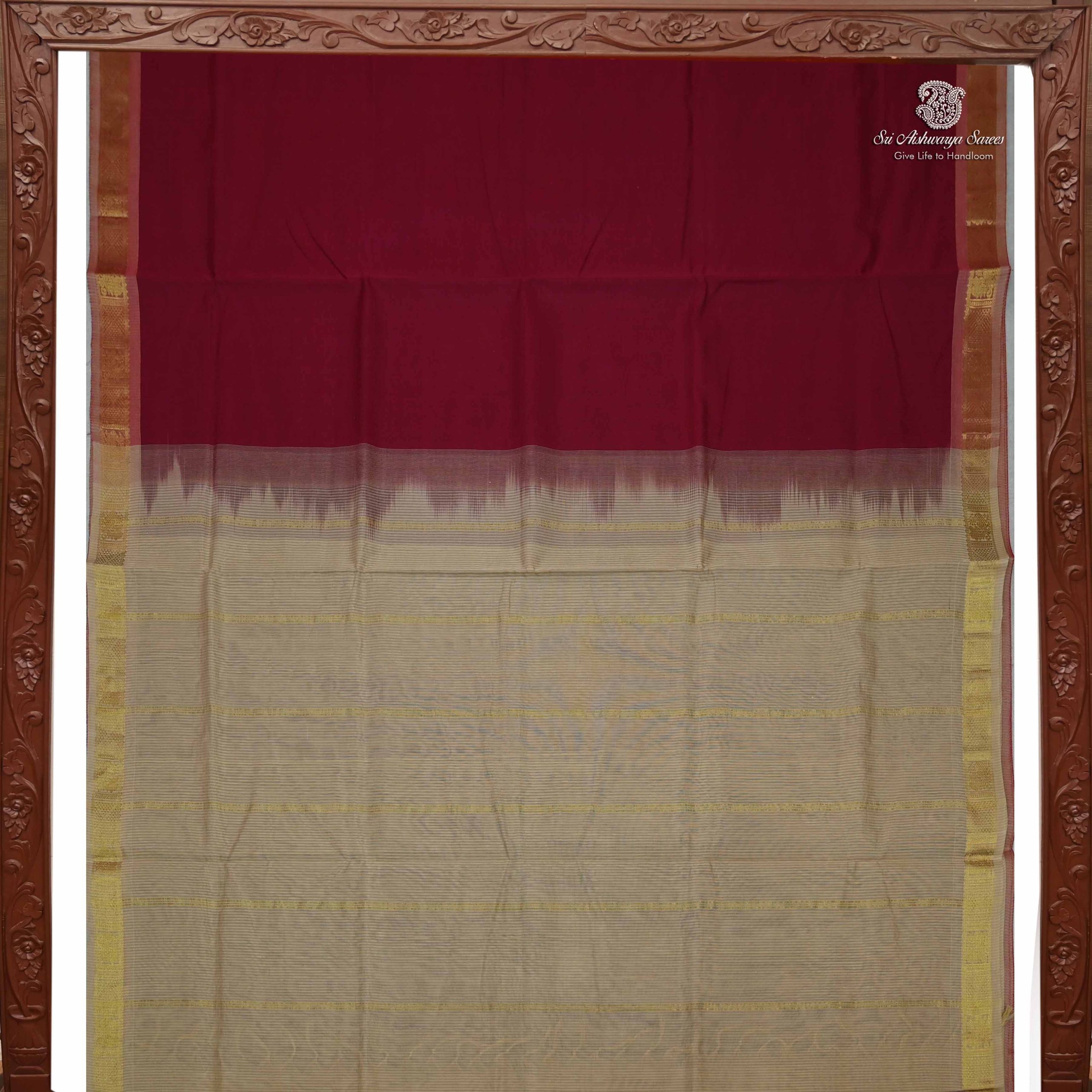 Pure silk cotton saree with a Dark Red body and simple beige pallu. A vibrant handloom piece blending elegance with traditional charm.