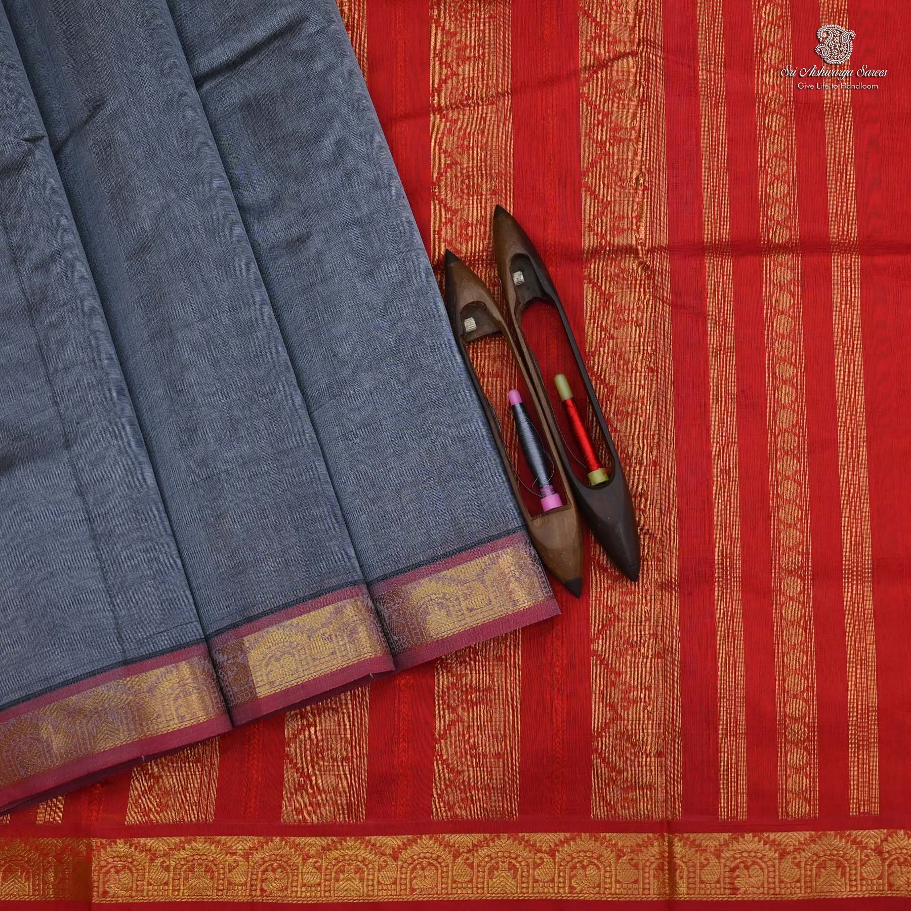 Pure silk cotton saree with a Gray body and simple red pallu. A vibrant handloom piece blending elegance with traditional charm.