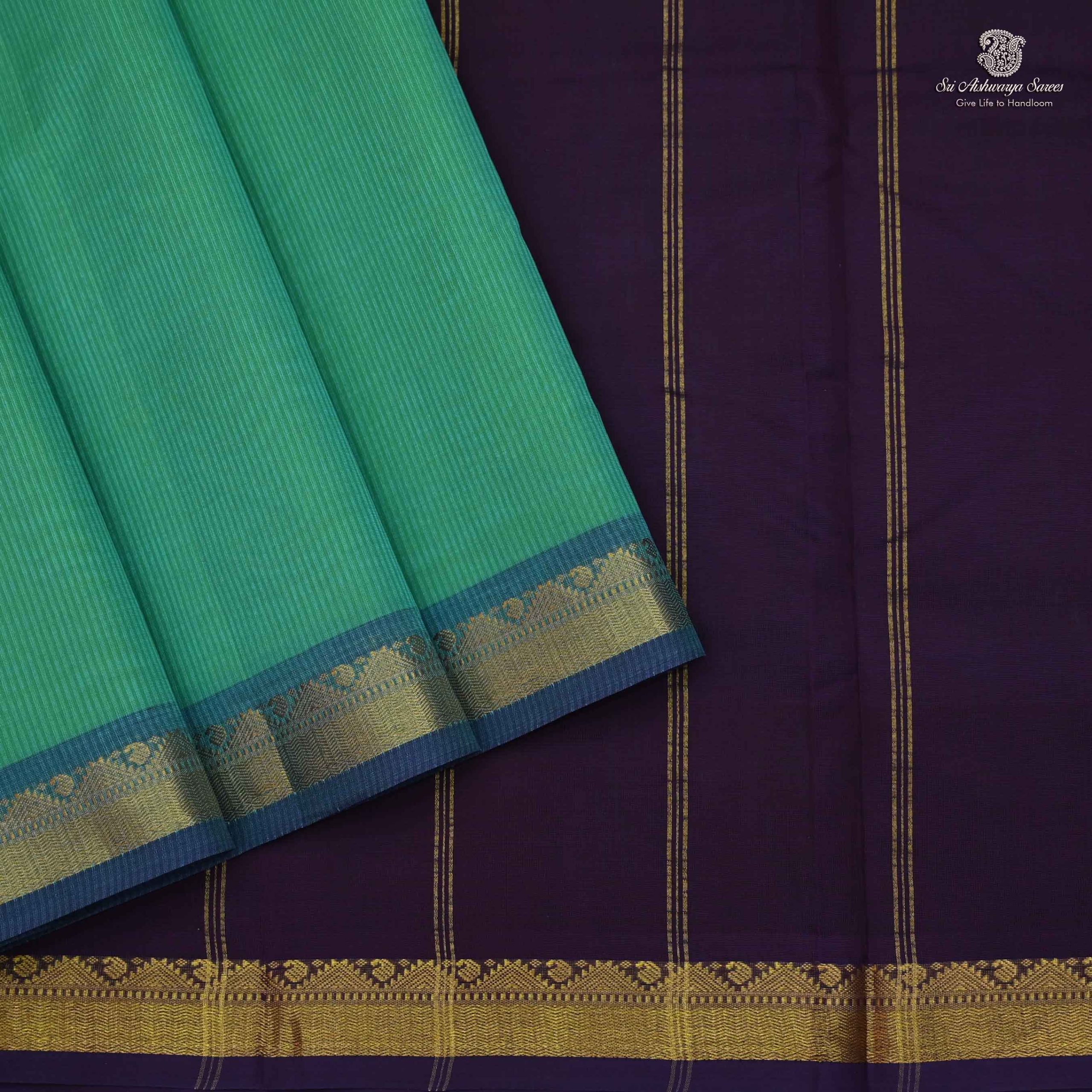 Pure silk cotton saree with a Seafoam green body and simple dark brown pallu. A vibrant handloom piece blending elegance with traditional charm.