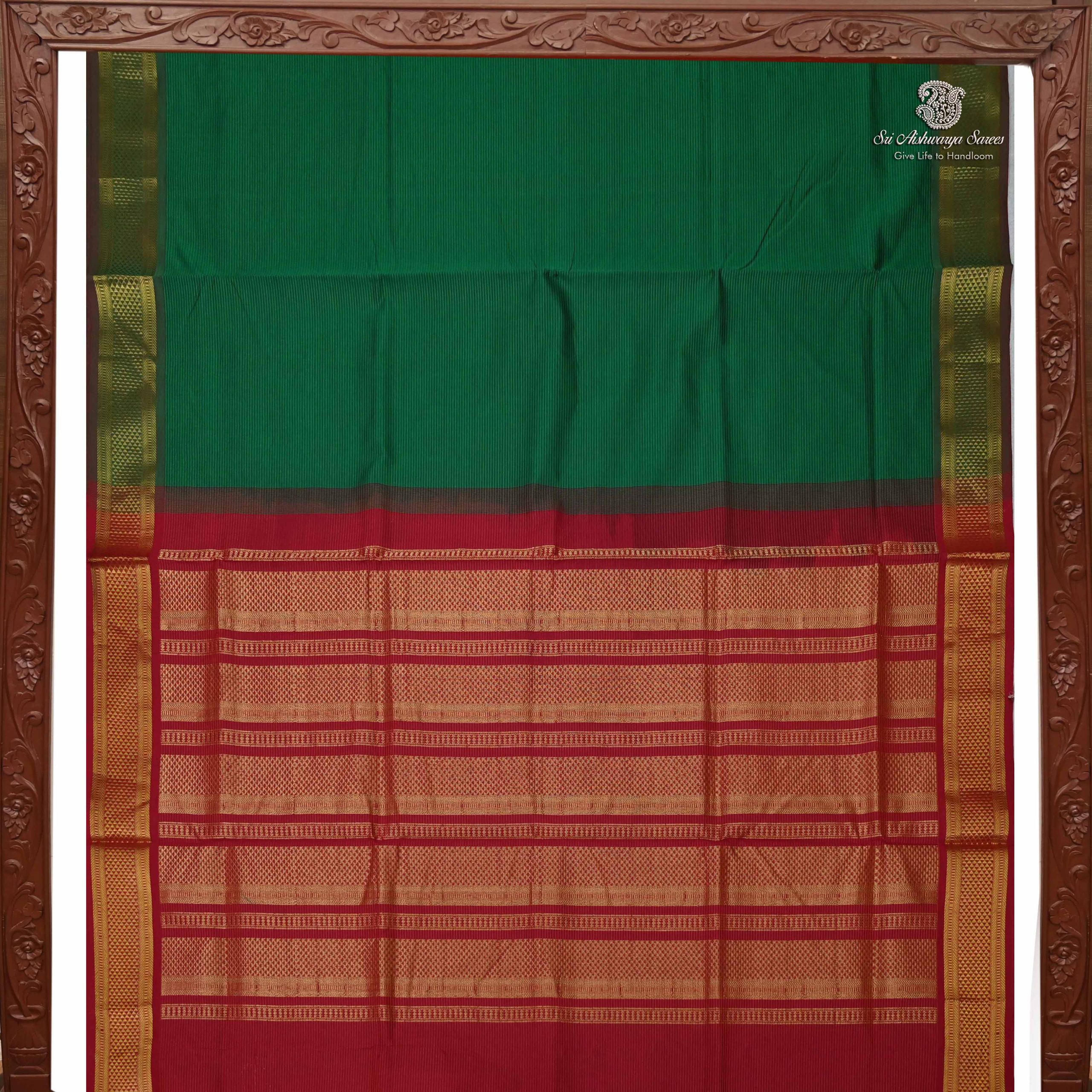Semi Silk Cotton Saree – Dark green