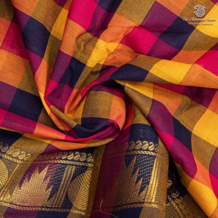 Chettinad Cotton Saree – Navy Blue and Yellow SASC35507